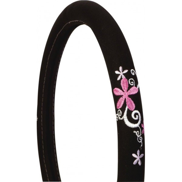 Univerzális kormányvédő virágmintával, fekete