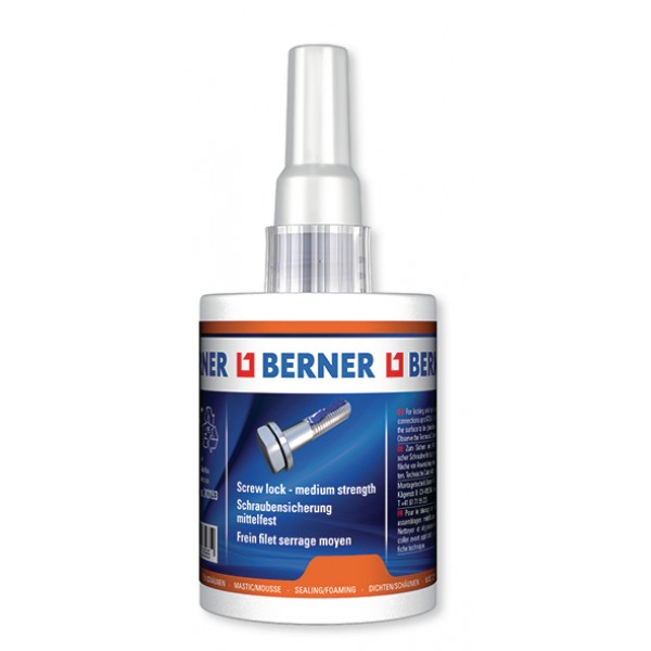 A Berner csavarbiztosító-menetrögzítő a csavarkötések, menetbetétek, merevítőcsavarok és anyák biztosítására és tömítésére szolgál.