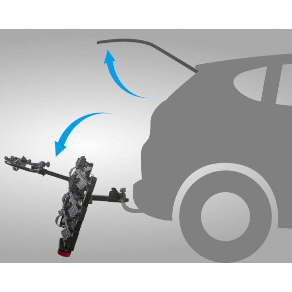 - A Buzz Rack Scorpion kerékpártartó a kerékpárokkal együtt dönthető, így a kerékpár valamint a tartó eltávolítása nélkül könnyedén hozzáférhetünk a csomagtartóhoz.