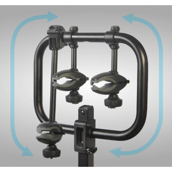 A racsnis hevederek lehetővé teszik a kerekek gyors és biztonságos rögzítését, a hosszú hevederek akár 4” széles gumiabroncsokat is befogadhatnak. A zárható vázkarok biztonságosan tartják a kerékpárokat és a kerékpárváz bármely részéhez vagy az ülésoszlophoz is rögzíthetők.