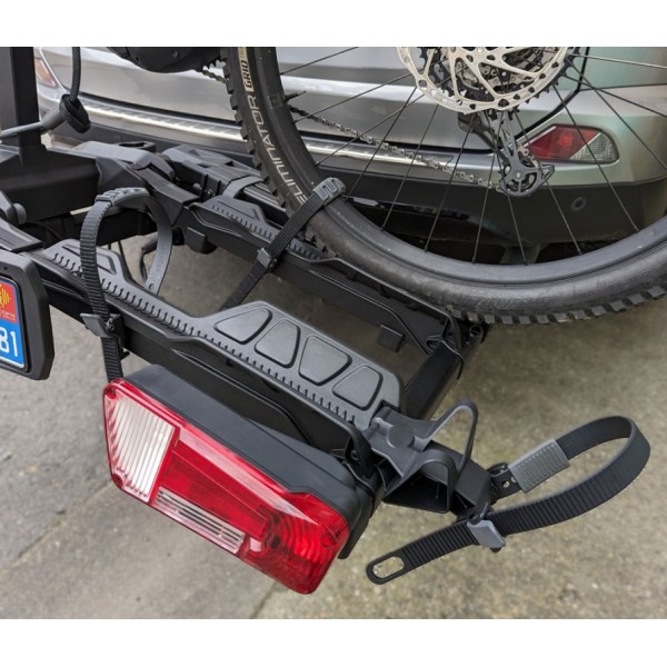 • Mind a két kerékpár a kerékpártartóhoz zárható, a Buzz Rack Scorpion Pro pedig hozzá zár a vonóhoroghoz.