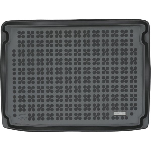 Méretpontos gumi csomagtartó borítás. Gyári minőségű, kopásálló, szagtalan gumiból készült peremes gumi csomagtartó tálca Ford Focus Hatchback 2018-tól gyártott (pótkerékkel) autókhoz.