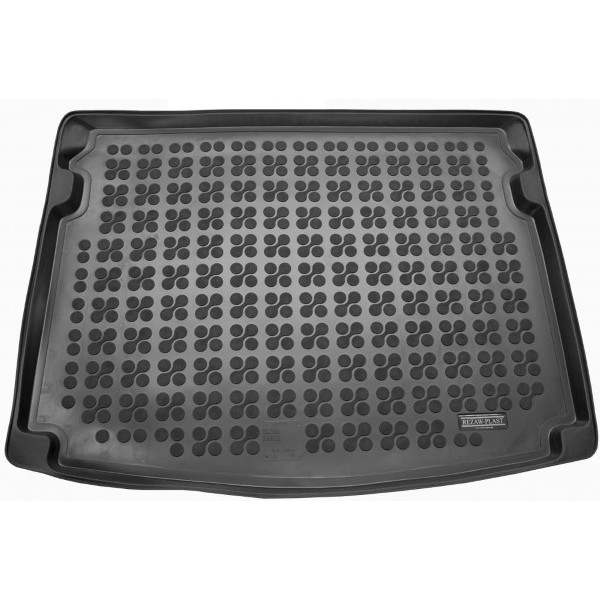 Méretpontos gumi csomagtartó borítás. Gyári minőségű, kopásálló, szagtalan gumiból készült peremes gumi csomagtartó tálca Skoda Karoq 2x4 2017-től gyártott (szükségkerékkel) autókhoz.