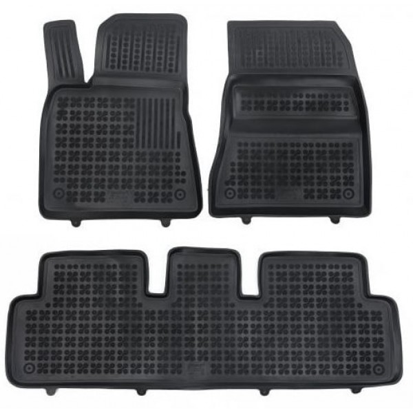 Méretpontos gumiszőnyeg. Gyári minőségű, kopásálló, szagtalan gumiból készült peremes gumiszőnyeg Tesla Model 3 2021-2023-ig gyártott autókhoz. Három részes autó gumiszőnyeg garnitúra.