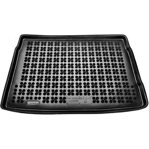 Méretpontos gumi csomagtartó borítás. Gyári minőségű, kopásálló, szagtalan gumiból készült peremes gumi csomagtartó tálca Volkswagen Golf VI Hatchback 2008-2012 gyártott (pótkerékkel) autókhoz.