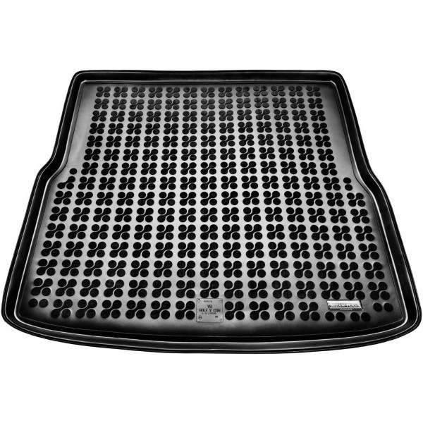 Méretpontos gumi csomagtartó borítás. Gyári minőségű, kopásálló, szagtalan gumiból készült peremes gumi csomagtartó tálca Volkswagen Golf VI Kombi 2009-2013 gyártott autókhoz.