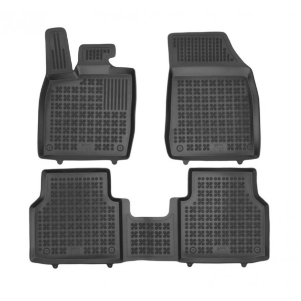Méretpontos gumiszőnyeg. Gyári minőségű, kopásálló, szagtalan gumiból készült peremes gumiszőnyeg Skoda Enyaq 2020-tól gyártott autókhoz. Háromrészes autó gumiszőnyeg garnitúra.