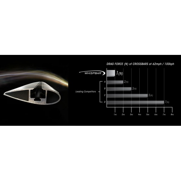 Yakima tetőcsomagtartóink az egyedi, aerodinamikai formának köszönhetően, szinte teljesen megszüntetik a kellemetlen szélzajt és az autó fogyasztását is csak rendkívül kis mértékben befolyásolják. A szélcsatornában tesztelt JetFlow™ könnycsepp forma erős, csendes és kivételesen aerodinamikus. Varrat nélküli extrudált alumínium szerkezet könnyű, erős és karcsú, a szárny alakú rúdprofil aerodinamikus kialakítást biztosít a szélzaj csökkentése érdekében. Az alumínium rúd közepén egy T-horony fut végig, amely használatával könnyebbé válik a kiegészítők felrögzítése. A formai kialakításon kívül a T-alakú rögzítő horony belső szigetelése is részt vesz a szélzaj csökkentésében. A különböző kiegészítők felszerelésénél nincs szükség a takaró gumicsíkot eltávolítani, elegendő, ha ujjunkkal összenyomjuk azt. Ezáltal a horony mindig fedve marad, megelőzve ezzel a szigetelőgumi elvesztését, és ami még fontosabb, a kellemetlen szélzaj kialakulását. A talpak és a rögzítő kit gumi bevonatúak, ennek köszönhetően nem okozhatnak sérüléseket, karcolásokat az autón.